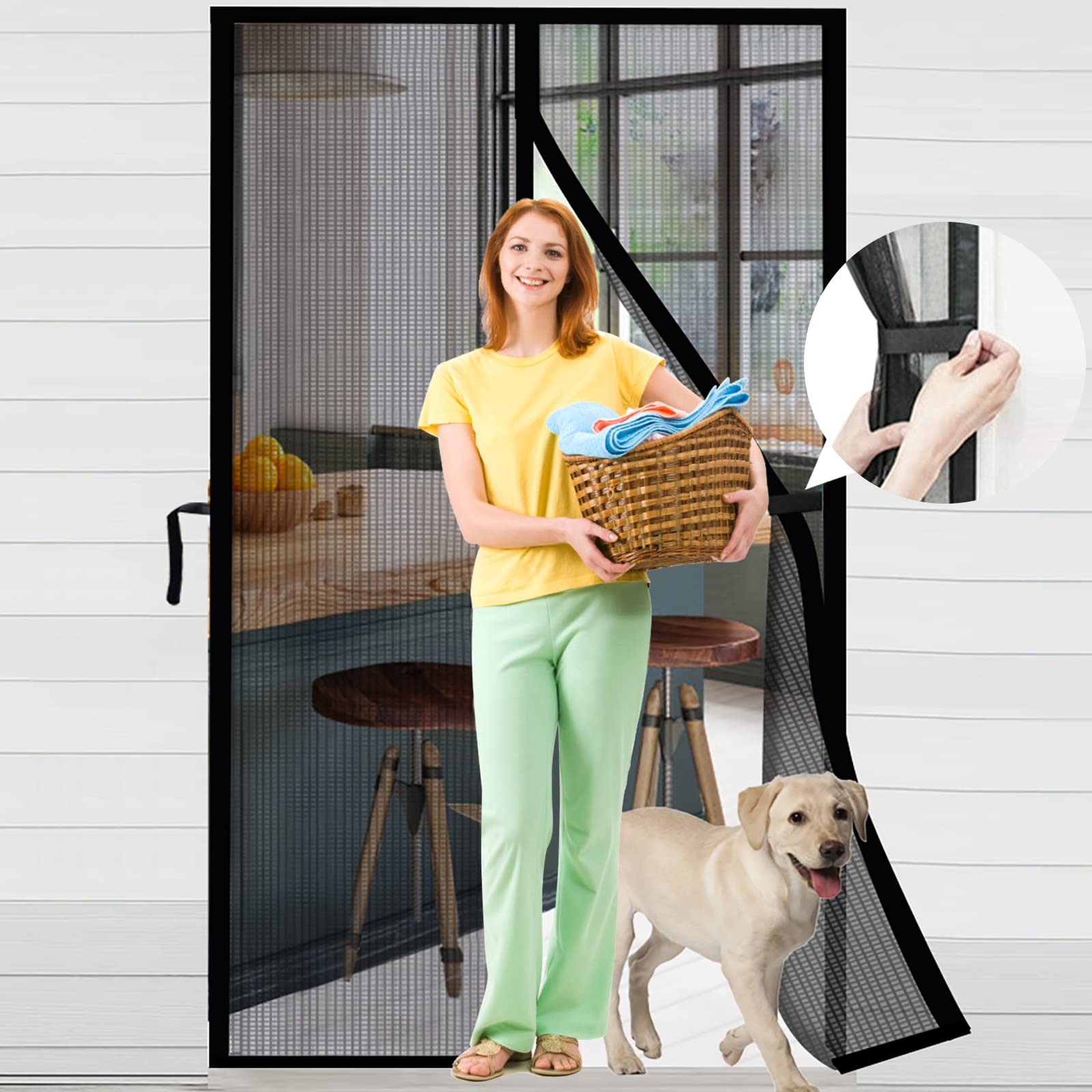 Upgraded Reinforced Magnet,Fiberglass Mesh Screen Door,Keep Bugs Out, Let Cool Breeze In,Self Sealing Magnets,Heavy Duty Retractable Mesh, Works With ...